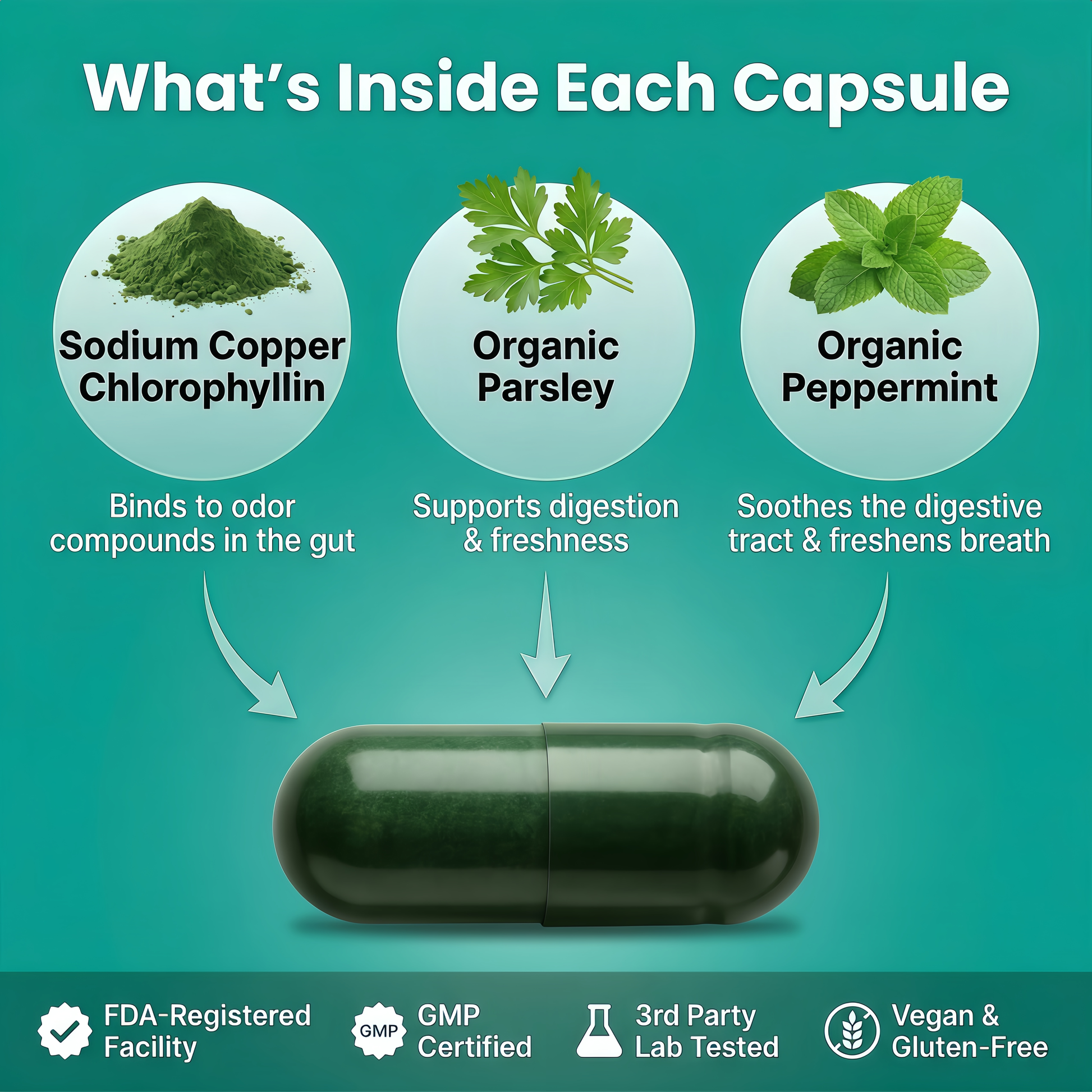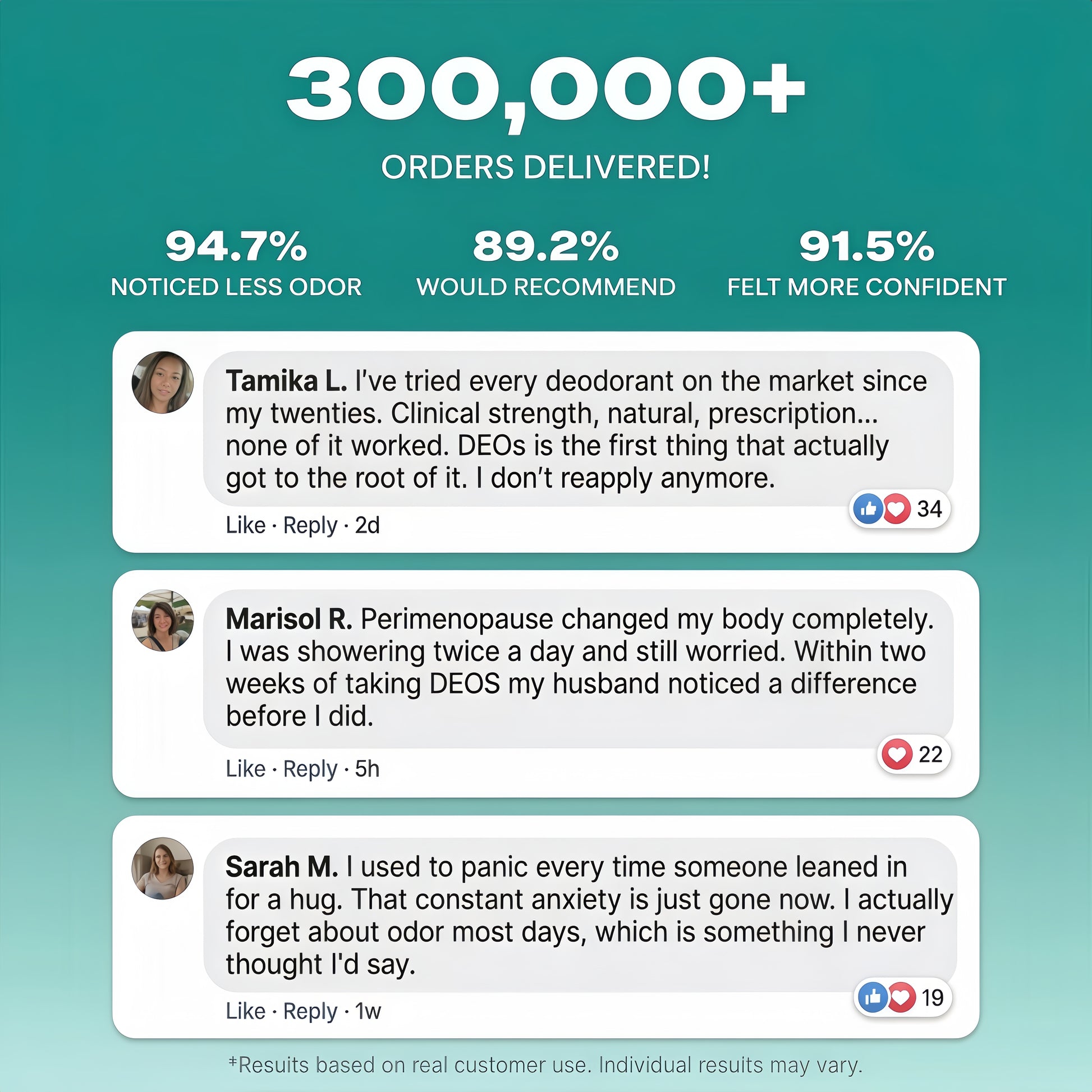 With Deos™ you'll enjoy full body odor protection, improved gut health & clearer skin, all from one daily capsule.